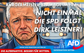 In der vergangenen Sitzung des Haupt- und Finanzausschusses (HFA) kam es zu einer äußerst kuriosen Szene: Bei der Abstimmung zur höchst umstrittenen Erhöhung der Grundsteuer, musste der neue Bürgermeister Dirk Leistner (SPD) eine peinliche Blamage [...]